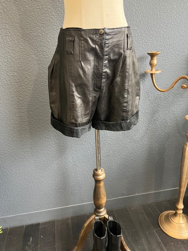 レザーのショートパンツ。 ハードになり過ぎずにかっこよく! 秋にぴったり! 冬はレギンスやロングブーツで! ■□ATTENTION□■ 古着特有の使用感や経年変化等もございますが、こちらも含めて楽しんで頂けたらと思います。 商品等の、ご質問はトップページのcontactからお問い合わせ頂く事が出来ますので是非ご利用ください。 月島にオフィスを構えております。 お近くの方はご試着して頂けます。CONTACTページよりお気軽にご予約ください。