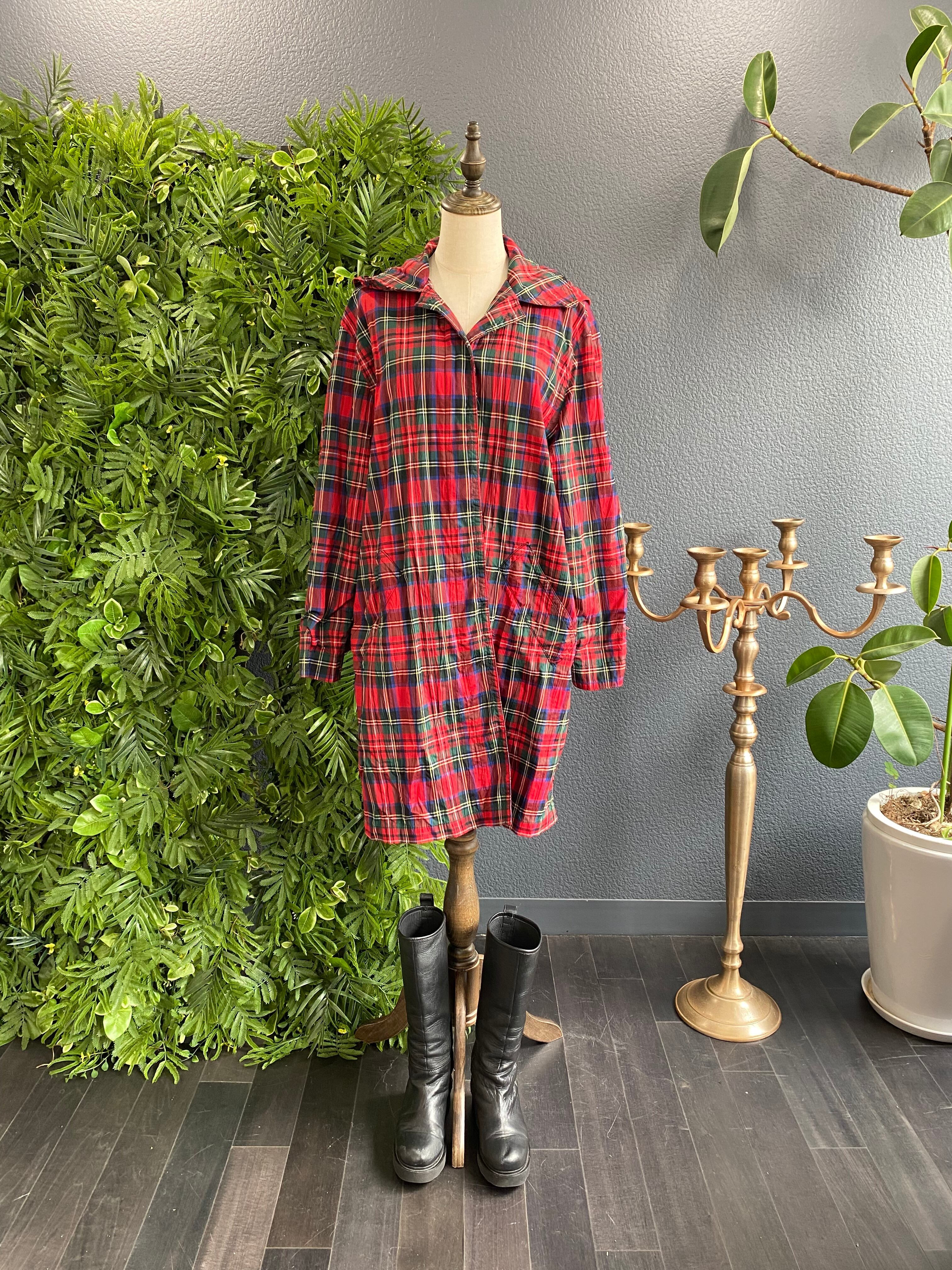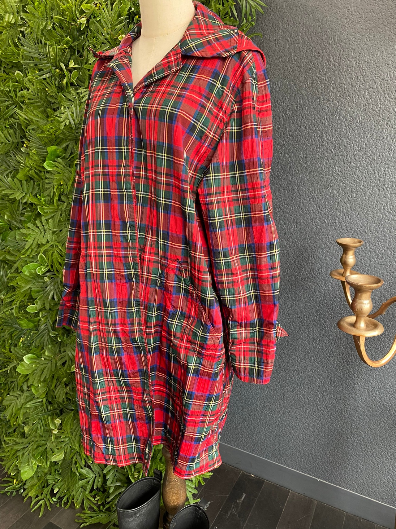 チェックのオーバーサイズコート。