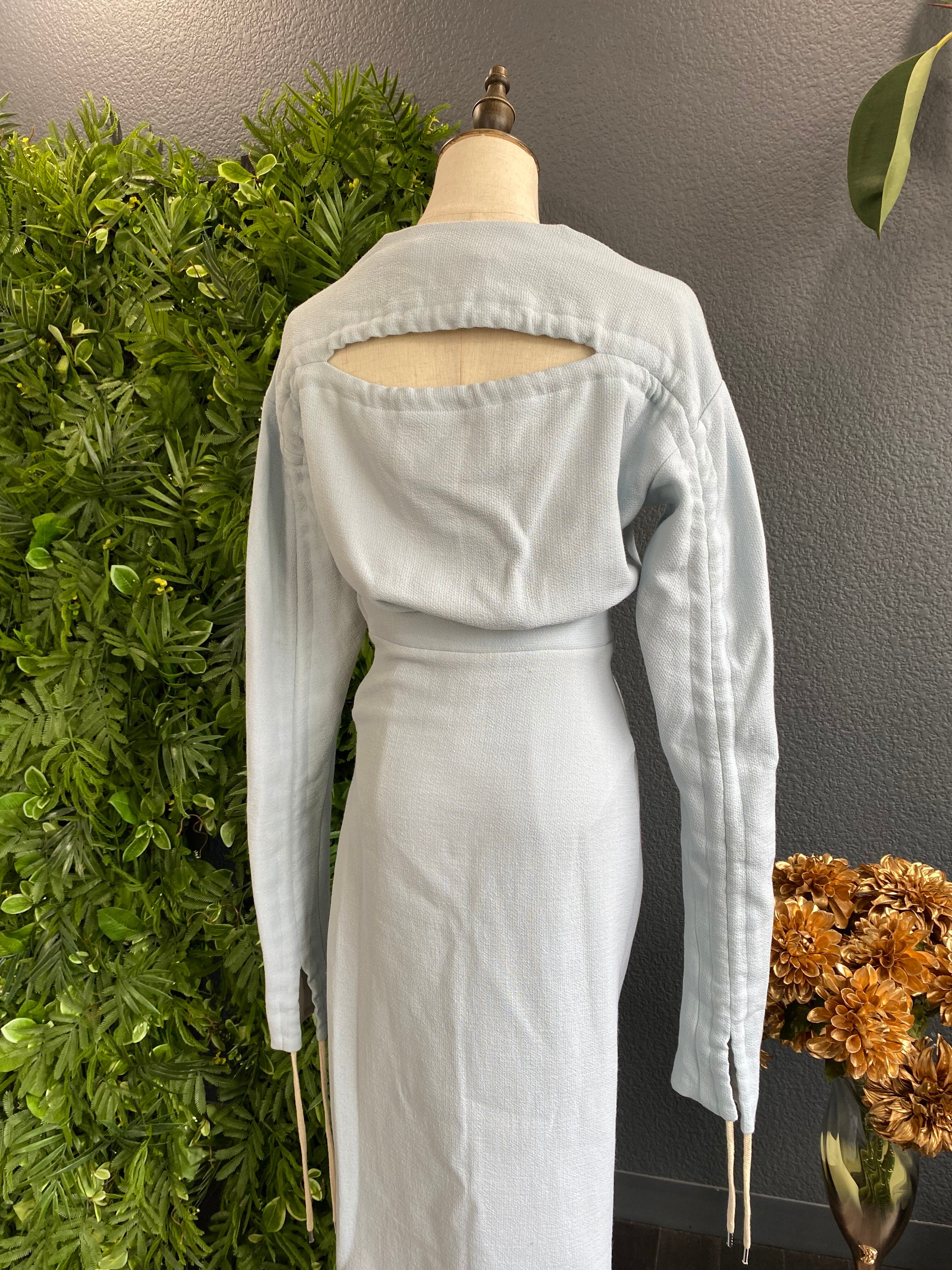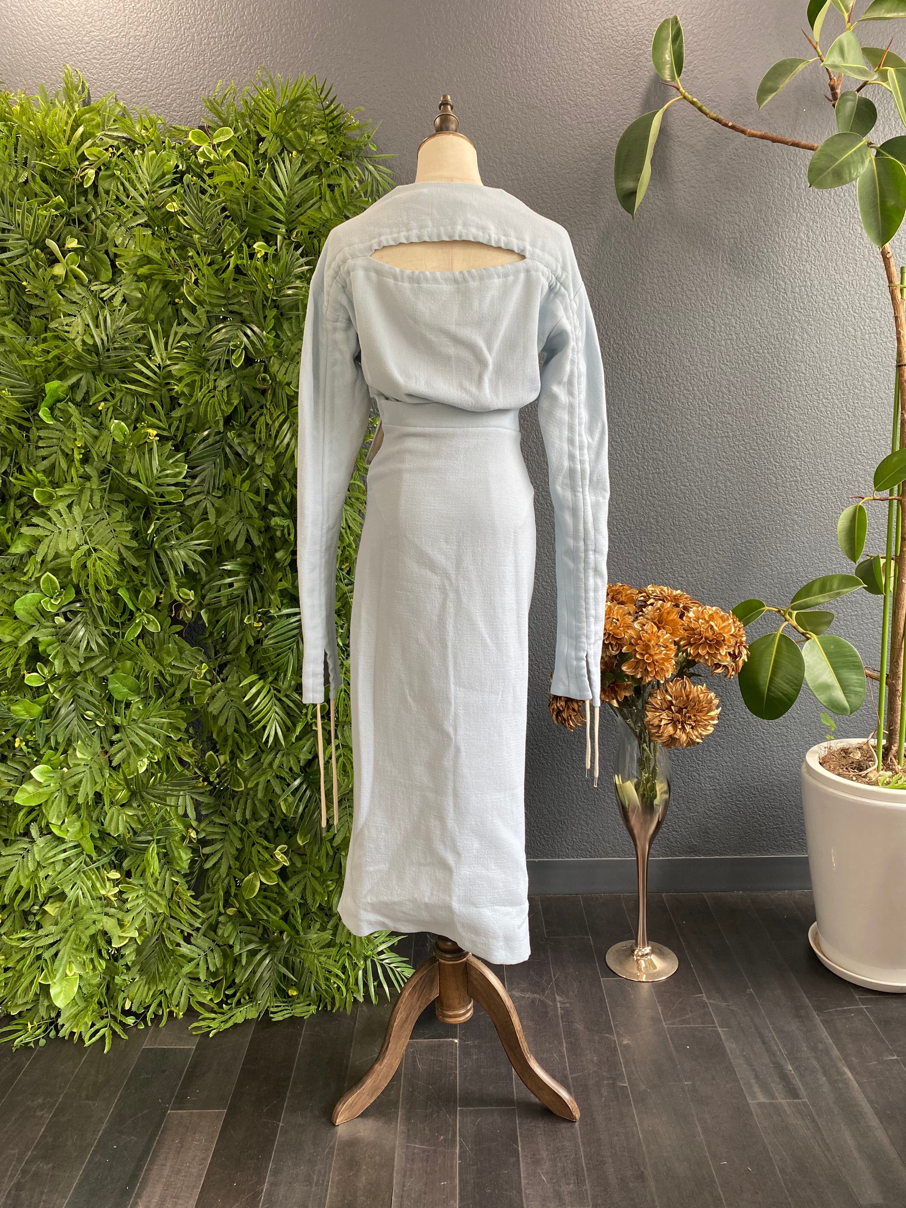 裾、袖が紐でぎゅっと絞れるワンピース。