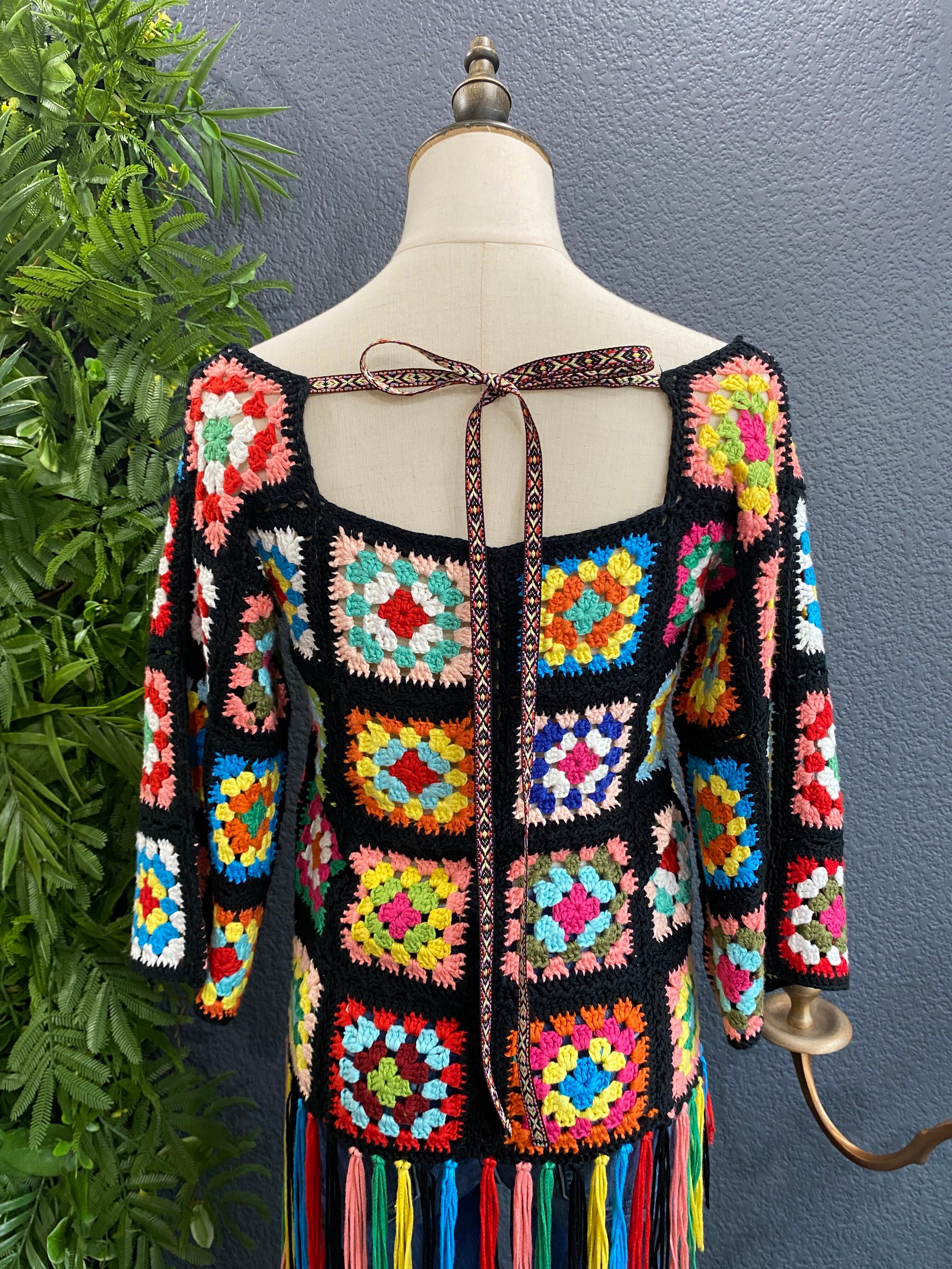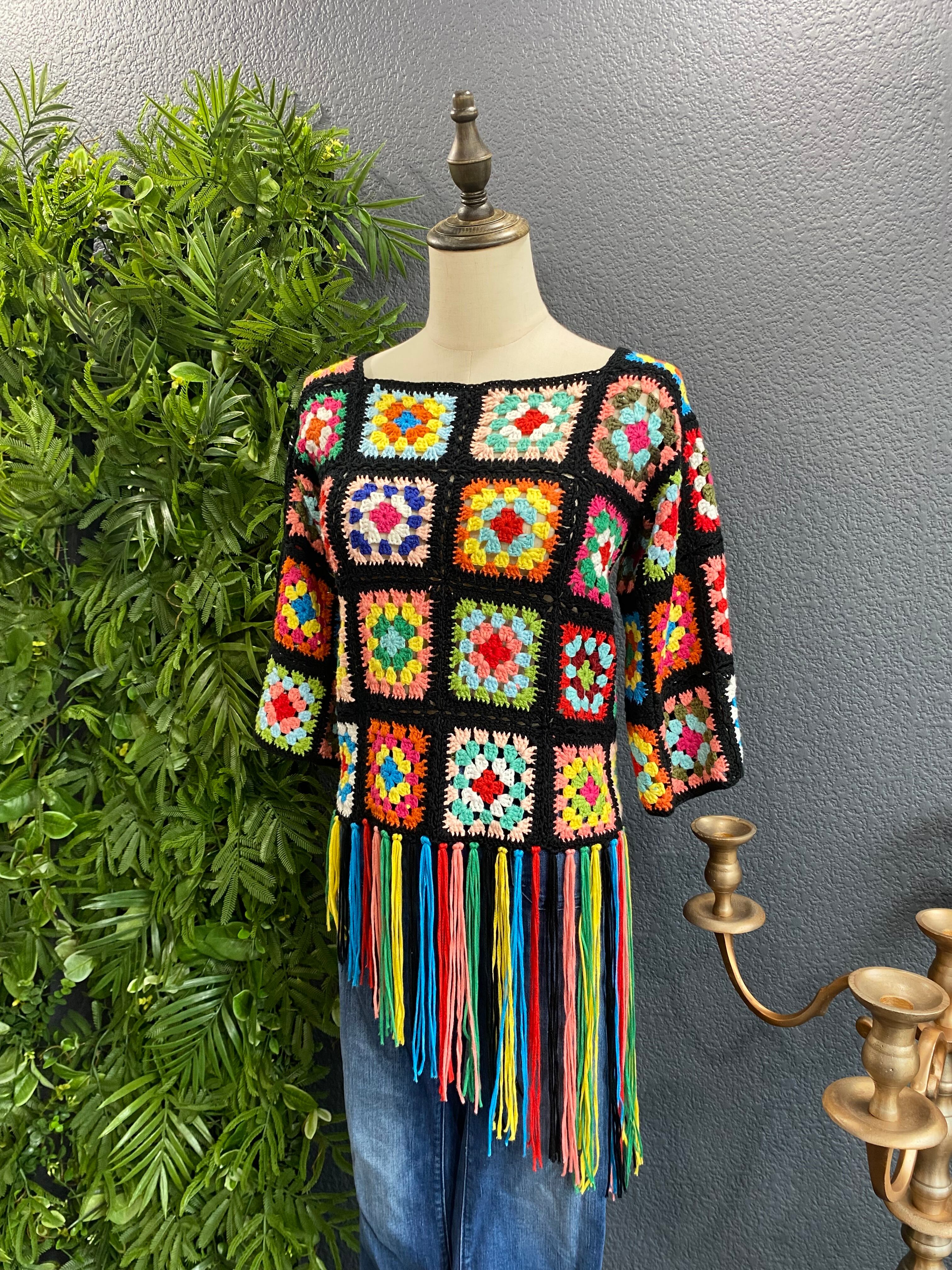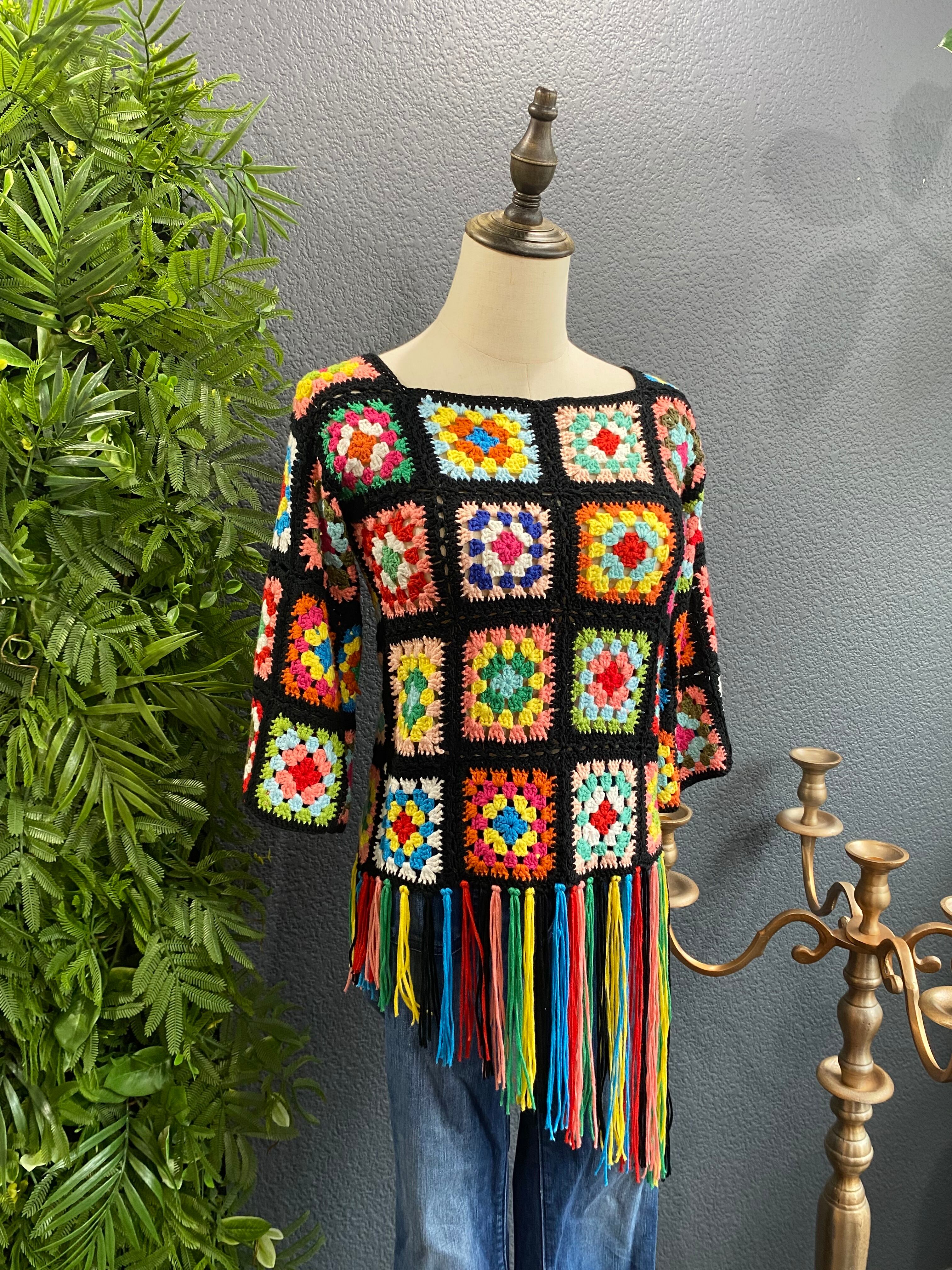 カラフル鍵編みトップス