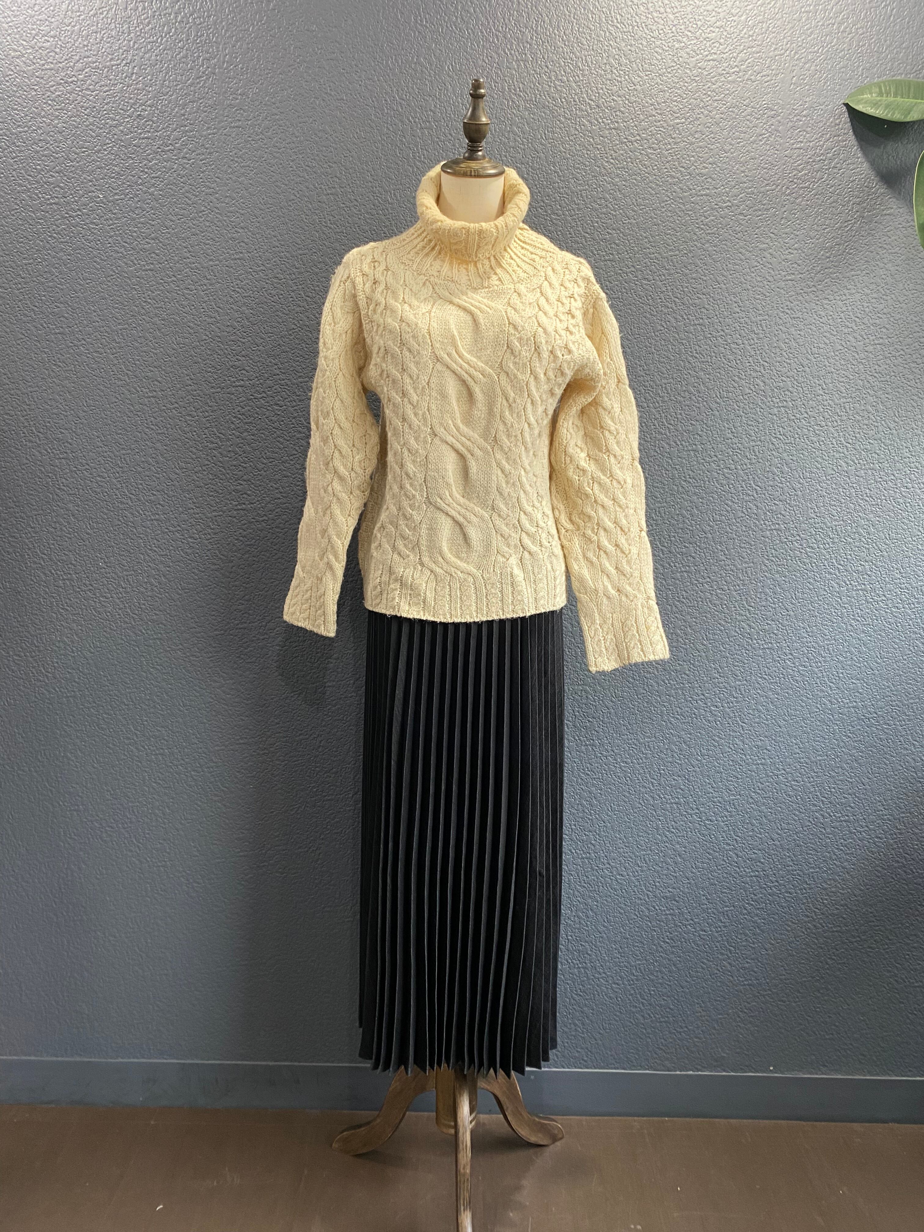 ハイネックケーブルニット