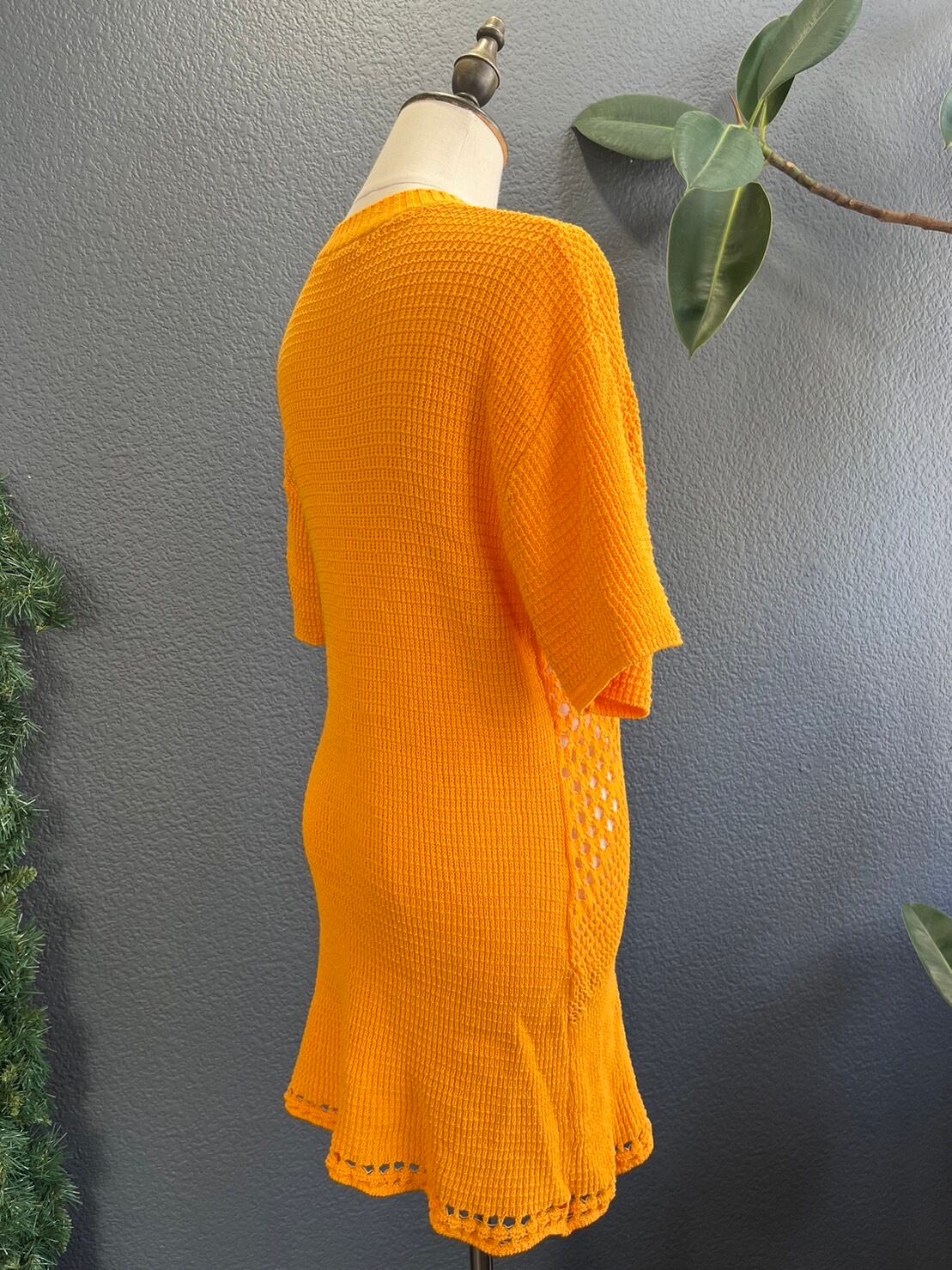 サマーニット素材のオレンジワンピース