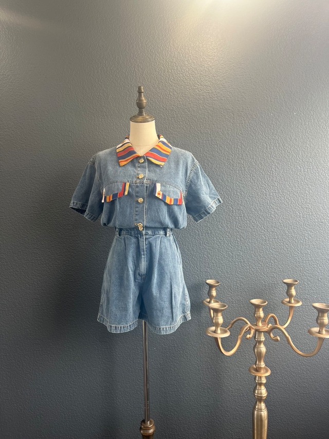 デニムジャンプスーツ ウェストもゴムでらくちんオシャレコーデ! ■□ATTENTION□■ 古着特有の使用感や経年変化等もございますが、こちらも含めて楽しんで頂けたらと思います。 商品等の、ご質問はトップページのcontactからお問い合わせ頂く事が出来ますので是非ご利用ください。 月島にオフィスを構えております。 お近くの方はご試着して頂けます。CONTACTページよりお気軽にご予約ください。